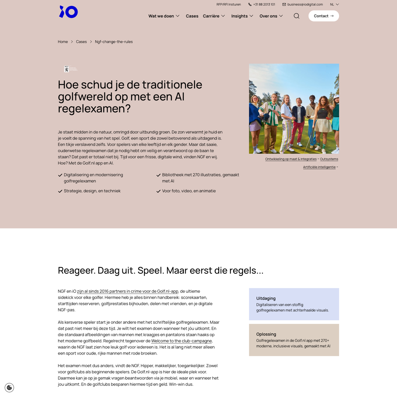 NGF and iO Digital transformed the golf exam by integrating AI and the Golf.nl app, creating a modern, accessible platform for all golfers. The solution addressed the outdated, traditional exam with a digital, interactive experience that aligns with the evolving golf culture. By leveraging AI-driven content and mobile capabilities, the platform offers a seamless, user-friendly experience, empowering golfers to learn and engage with the sport in a way that reflects today’s digital landscape. The initiative not only enhanced the learning experience but also helped golf clubs save time and resources, demonstrating the power of innovation in redefining traditional practices.