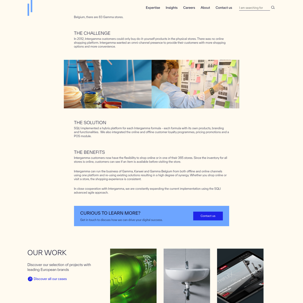 Intergamma BV transformed their do-it-yourself retail model by implementing a unified omnichannel solution using SAP CX. The platform enabled customers to shop online or in 365 physical stores, with real-time inventory visibility across all locations. By integrating loyalty programs, pricing promotions, and a POS module, Intergamma achieved seamless cross-channel experiences, allowing customers to browse, purchase, and collect products from any channel. The solution also facilitated centralized management of Gamma, Karwei, and Gamma Belgium operations, ensuring consistent customer experiences across online and offline channels. SQLI's advanced agile approach enabled efficient expansion and scalability, driving operational efficiency and customer satisfaction.