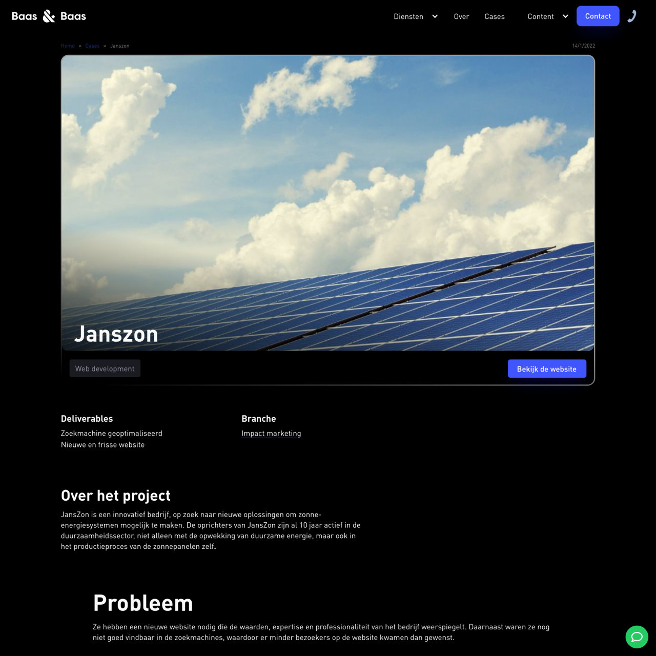Baas & Baas redesigned JansZon's website to reflect its values, expertise, and professionalism, improving search engine visibility and user experience. The new site features a modern design, optimized for mobile devices, and includes a hero video with readable overlay text. SEO improvements helped increase visibility and traffic, leading to higher conversion rates and better online performance. The site is now more effective in driving leads and generating revenue for the sustainable energy company.