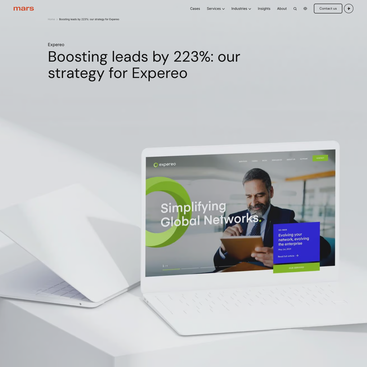 We crafted a custom SEO strategy to boost Expereo's traffic by identifying high-value keywords and creating targeted landing pages. Through data analysis and continuous optimization, we enhanced user engagement and conversion rates. By leveraging retargeting tactics and persona-driven content, we effectively captured micro-conversions, transforming visitors into leads. The approach focused on aligning content with distinct buyer personas, ensuring each page addressed specific decision-making stages and technical needs.