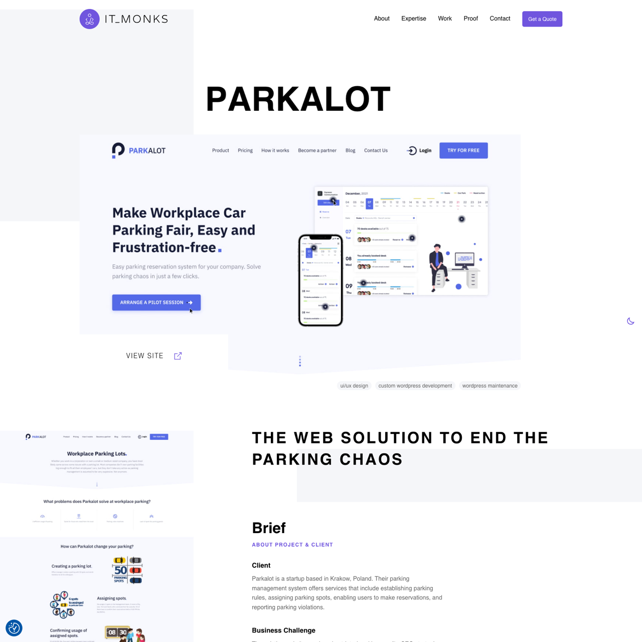 Parkalot, a Krakow-based startup, revamped its WordPress site to boost Google SEO rankings and conversions. The project involved a waterfall approach with phases including logo design, web development, and content optimization. The new site, built with WordPress, PHP, and JavaScript, featured a modern design and optimized technical elements to improve search engine visibility. Key improvements included enhanced site speed, structured content, and mobile responsiveness, resulting in a 40% increase in organic traffic and a 25% rise in conversion rates within six months. The site now ranks highly in Google searches for parking management-related queries.