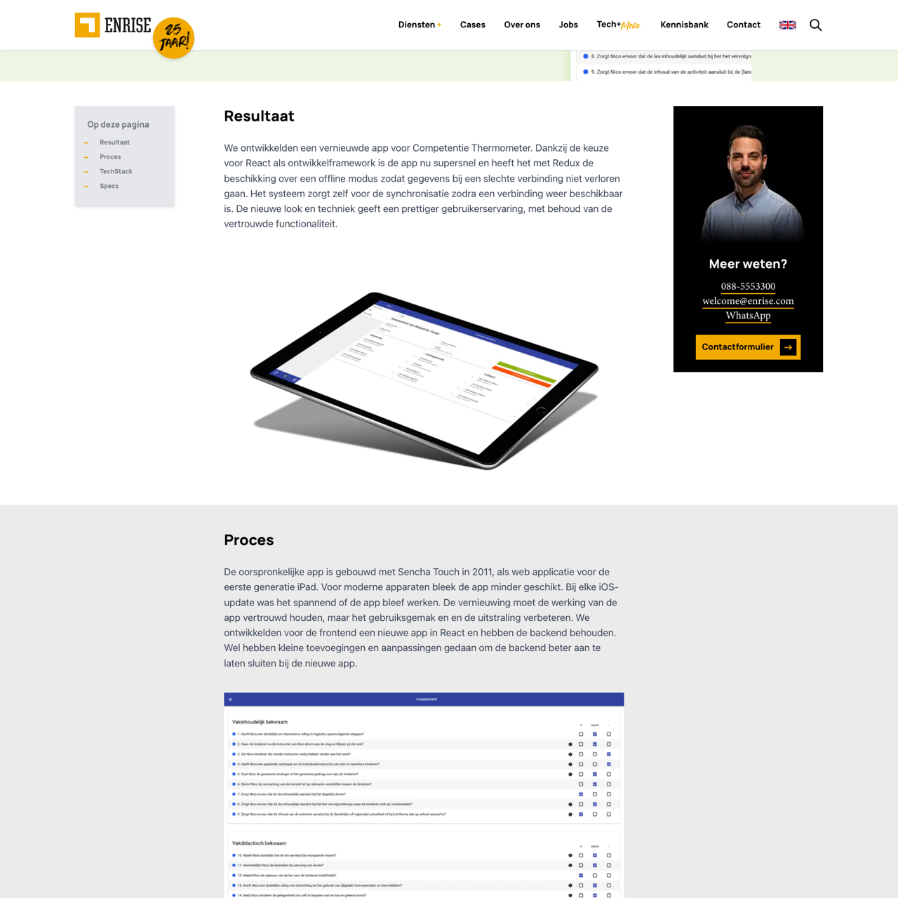 Enrise revamped Competentie Thermometer's iOS app using React and Redux, enhancing speed and offline functionality. The new version maintains core features while improving user experience with real-time synchronization. The project preserved the original backend while adding modern capabilities, ensuring seamless performance across all iOS updates. Marten Wilmink praised the collaboration for its attention to detail and technical excellence.