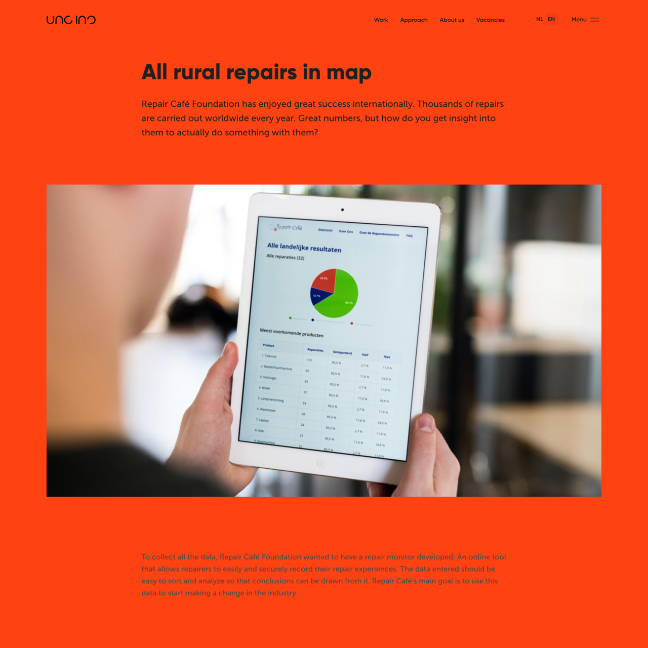 The Repair Café Foundation sought to transform local repair data into actionable insights to drive industry change. By partnering with an innovative tech solution, they created a secure, user-friendly platform for recording repairs, enabling data analysis and policy advocacy. The tool streamlined process tracking, allowing coordinators to visualize trends and advocate for better repair support. Through extensive research, the foundation developed personas to better understand end-user needs, ensuring the platform prioritized practical repair knowledge and environmental sustainability. This data-driven approach aims to push for systemic improvements in repair accessibility and resource allocation.