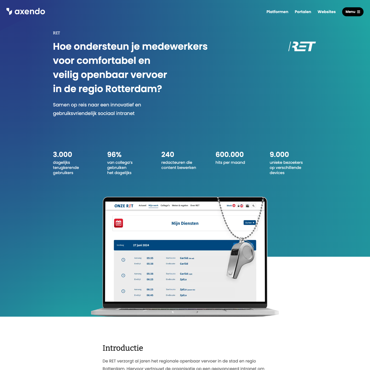 Axendo helped RET upgrade their intranet and corporate website to enhance operational efficiency and user experience. The intranet, designed as a strategic communication tool, enables seamless information sharing across departments with a user-friendly interface. Emilie Lever-Puylaert, a communication advisor at RET, highlights how the system supports real-time news updates and accurate reporting, ensuring employees have access to critical information. The platform's simplicity allows redacteurs and staff to manage content effortlessly, fostering a more organized and efficient work environment. The upgraded system not only improves internal communication but also strengthens the RET's ability to deliver high-quality public transport services in the MRDH region.