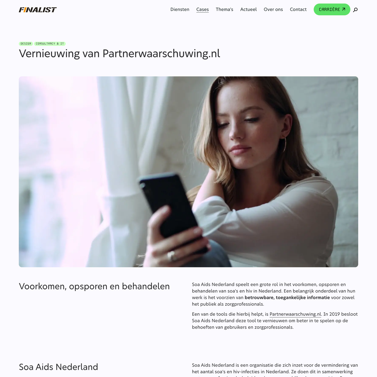Soa Aids Nederland partnered with Finalist to revamp Partnerwaarschuwing.nl, a tool designed to prevent and address STIs. The project aimed to modernize the platform to better meet the needs of users and healthcare professionals. With a focus on accessibility and user experience, the update included features like anonymous partner warnings and improved functionality. The RIVM subsidy supported the initiative, ensuring the platform remained relevant and effective. The revamped site now offers a more intuitive interface and enhanced security, helping reduce stigma and improve STI prevention outcomes. The project demonstrated the importance of aligning digital tools with evolving user expectations and public health needs.