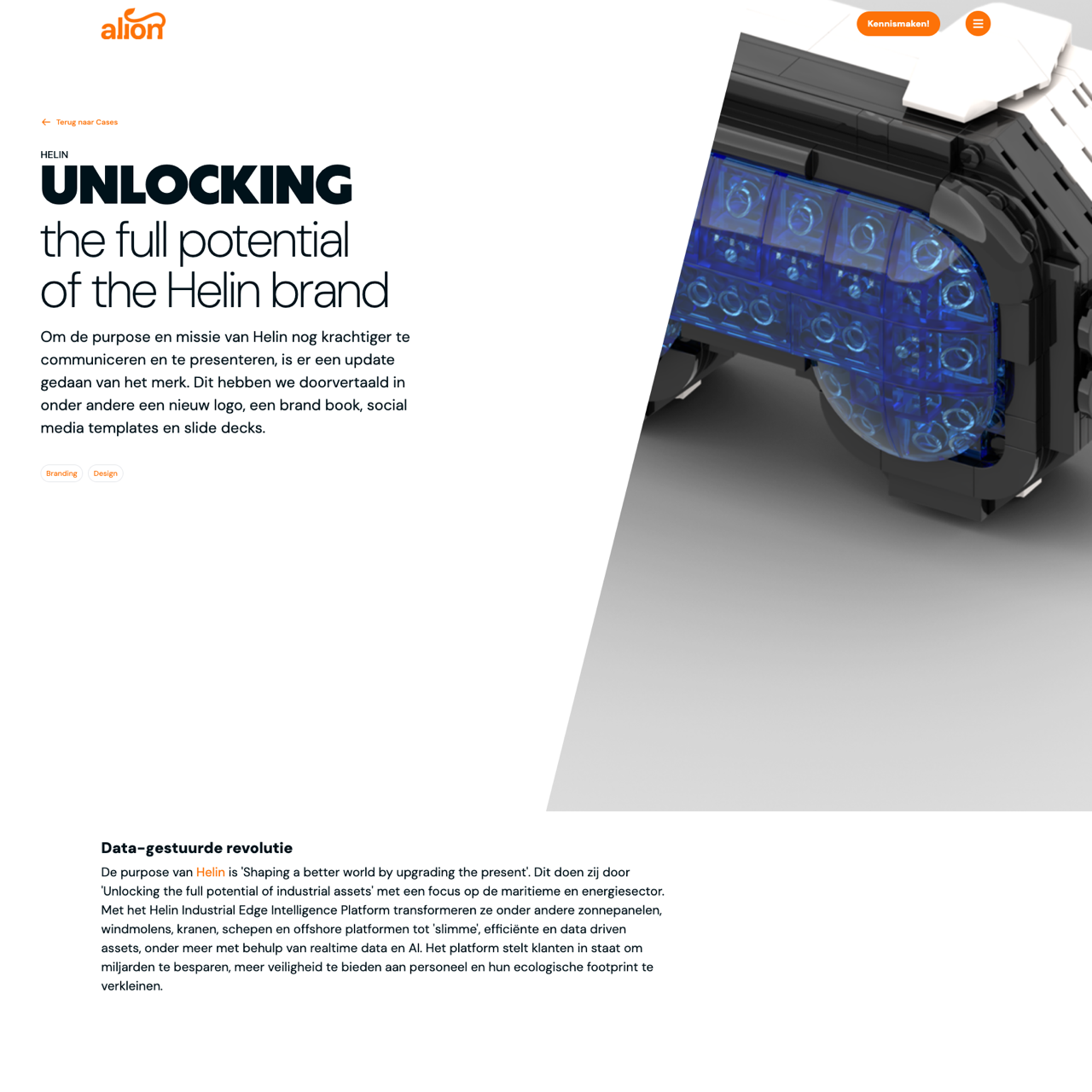 Helin's brand was revamped with a new logo, brand book, social media templates, and slide decks. The Helin Industrial Edge Intelligence Platform transformed industrial assets into smart, data-driven ones. The update aimed to enhance communication and align with the purpose of 'Shaping a better world by upgrading the present'. For internal communication, a modular concept was used to create 3D visuals and animations. The brand identity guide ensured consistent materials both internally and externally. LEGO is a trademark of the LEGO Group of companies.