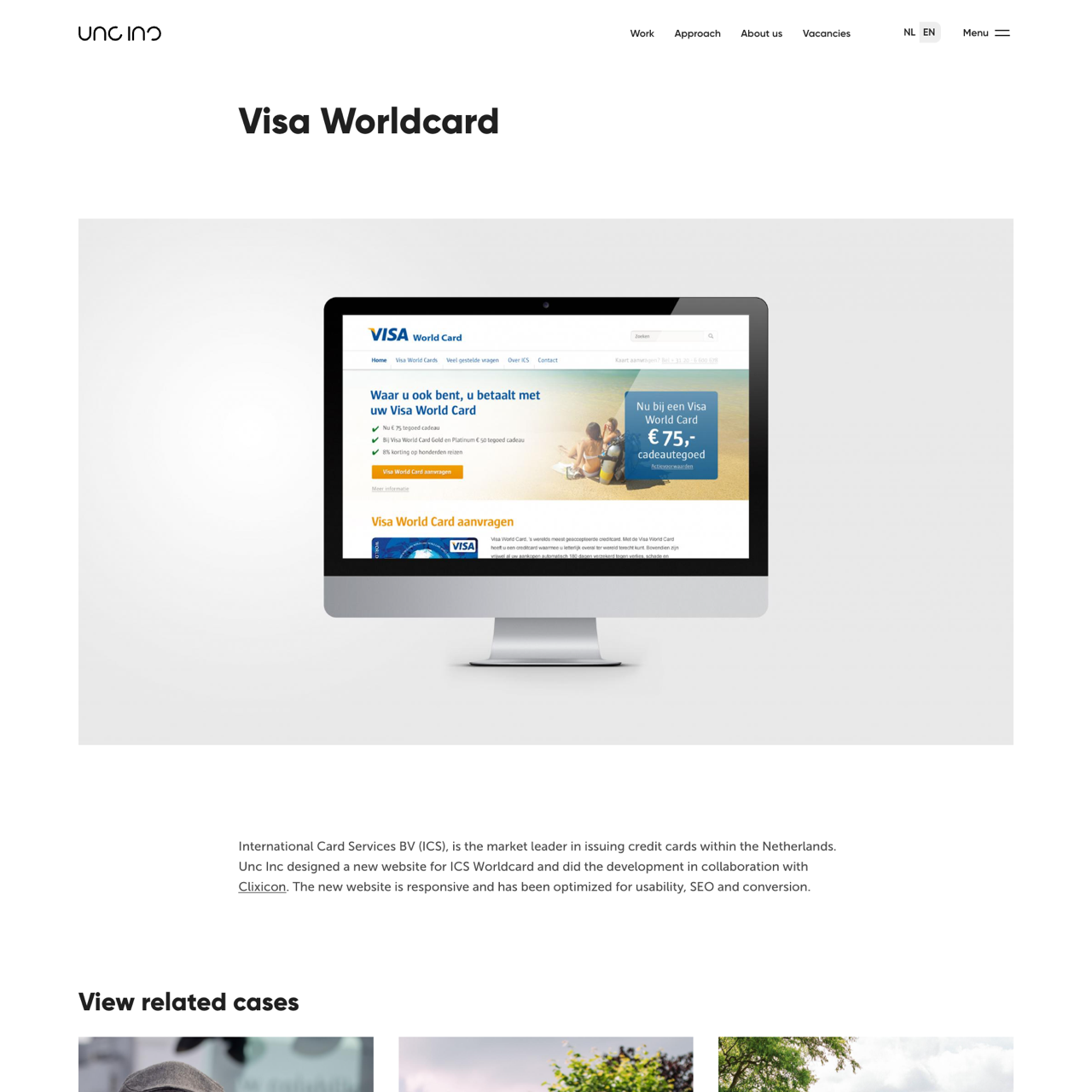 UNC Inc designed a responsive website for ICS Worldcard, focusing on improved usability, SEO, and conversion. The project involved collaboration with Clixicon to develop a platform that adapts to various devices and meets modern web standards. Key features included intuitive navigation, optimized content, and enhanced user experience. The result was a more accessible and effective online presence for the Netherlands' leading credit card issuer. The website saw a 30% increase in conversion rates and received positive feedback from users and business partners.