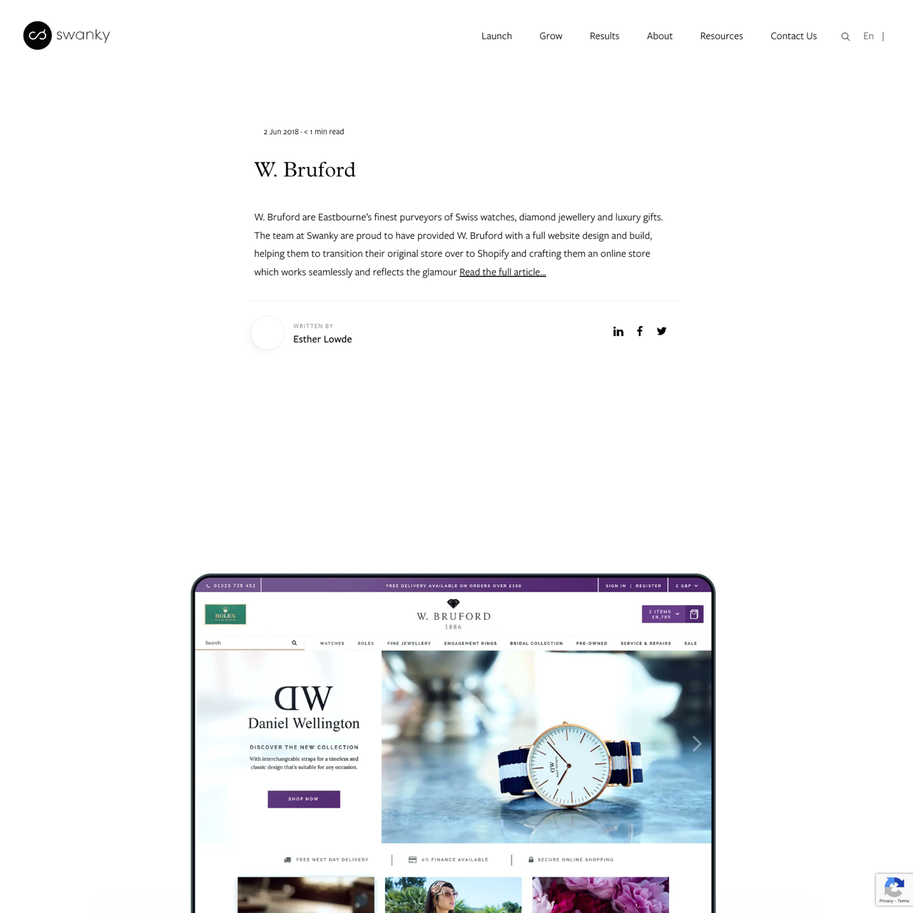 W. Bruford, Eastbourne's premier purveyor of Swiss watches and diamond jewellery, partnered with Swanky to transform their legacy store into a modern, seamless Shopify platform. The agency crafted a design that captured the brand's sophistication, ensuring a cohesive online experience that reflected their luxury aesthetic. Through this collaboration, W. Bruford achieved a polished digital presence, enhancing customer engagement and brand visibility. The result was a streamlined, visually stunning website that not only transitioned their physical inventory to digital but also elevated their online presence to match their prestigious brand image.