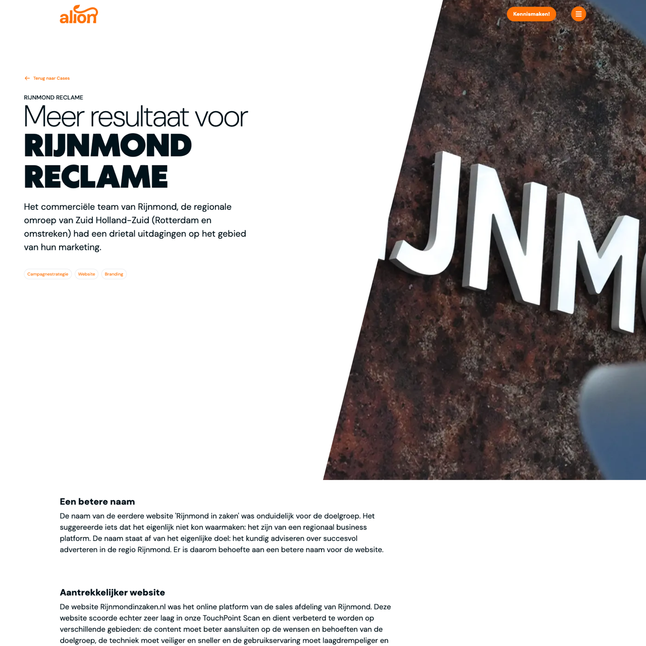Rijnmond Reclame faced challenges with their outdated website 'Rijnmond in zaken' which lacked clarity for their regional business audience. The site scored poorly in TouchPoint Scan, necessitating a comprehensive overhaul. Alion optimized the platform using Umbraco, resulting in a faster, more secure, and user-friendly website. The new design enhanced engagement, improved conversion rates, and increased lead generation. The revamped site now offers a seamless experience, aligning with the brand's goals of providing expert advice and effective marketing solutions for the Rijnmond region.