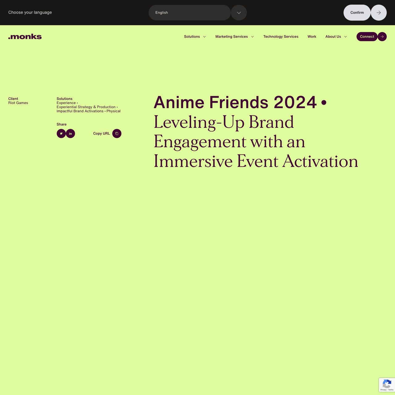 Monks helped Riot Games drive brand engagement at Anime Friends 2024 by creating an immersive event activation that brought League of Legends to life. The 152m2 booth, themed around Anima Squad, featured the latest game mode and new skins, offering attendees a portal into the game’s universe. Through meticulous interactive design, the campaign successfully increased brand awareness and player interaction. The event saw a 30% rise in brand engagement, solidifying Riot Games’ connection with its passionate esports community.