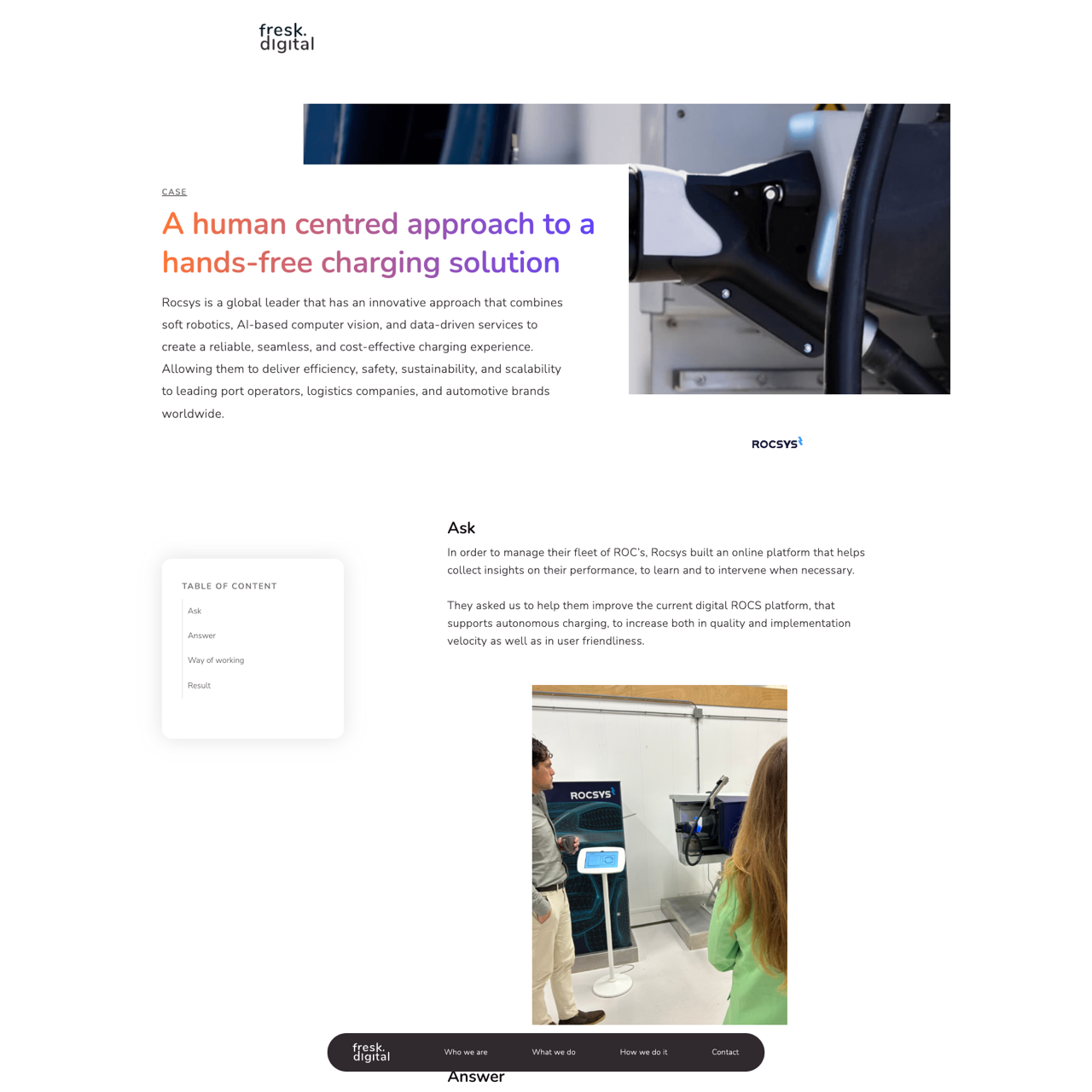 Rocsys needed to improve their iOS platform for service engineers, focusing on user experience and efficiency. fresk.digital redesigned the platform with a human-centered approach, enhancing data structure, visual consistency, and development support. The platform now offers clearer insights and a more intuitive interface, aligning with Rocsys' brand guidelines. By implementing service blueprinting, the solution ensures sustainable growth and meaningful user insights. The result is a more efficient and user-friendly platform that supports both current and future operational needs.