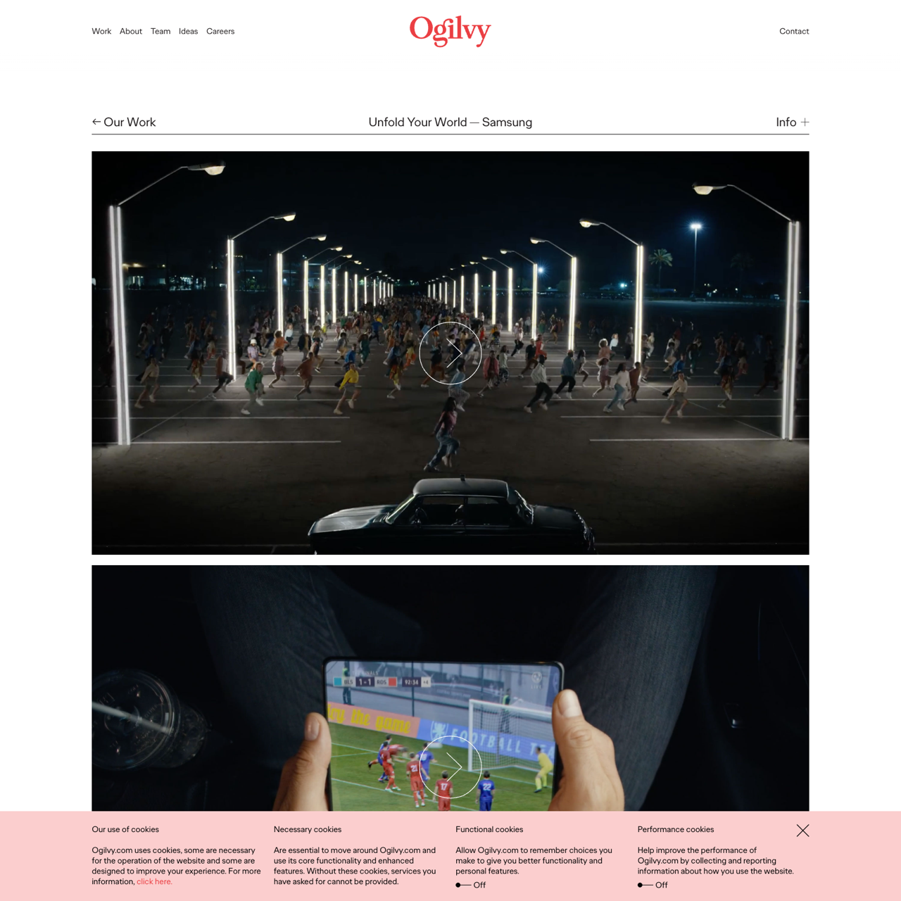 Samsung's campaign leverages a dynamic, narrative-driven film to showcase the transformative experience of the Z Fold3 and Z Flip3. By blending surreal storytelling with real-world engagement, the ad features a dancer in a carpark who uses the Z Flip3's Flex Mode to livestream her performance, mirroring the viewer's own immersive experience. The film's surreal elements, from barbarians taking over streets to a dancer on stage, highlight the product's ability to blend physical and digital realms. The result is a compelling narrative that challenges traditional media boundaries, positioning Samsung as a pioneer in immersive digital storytelling. The campaign successfully captures the essence of 'Unfold Your World,' emphasizing the product's unique ability to transform everyday experiences into extraordinary moments.