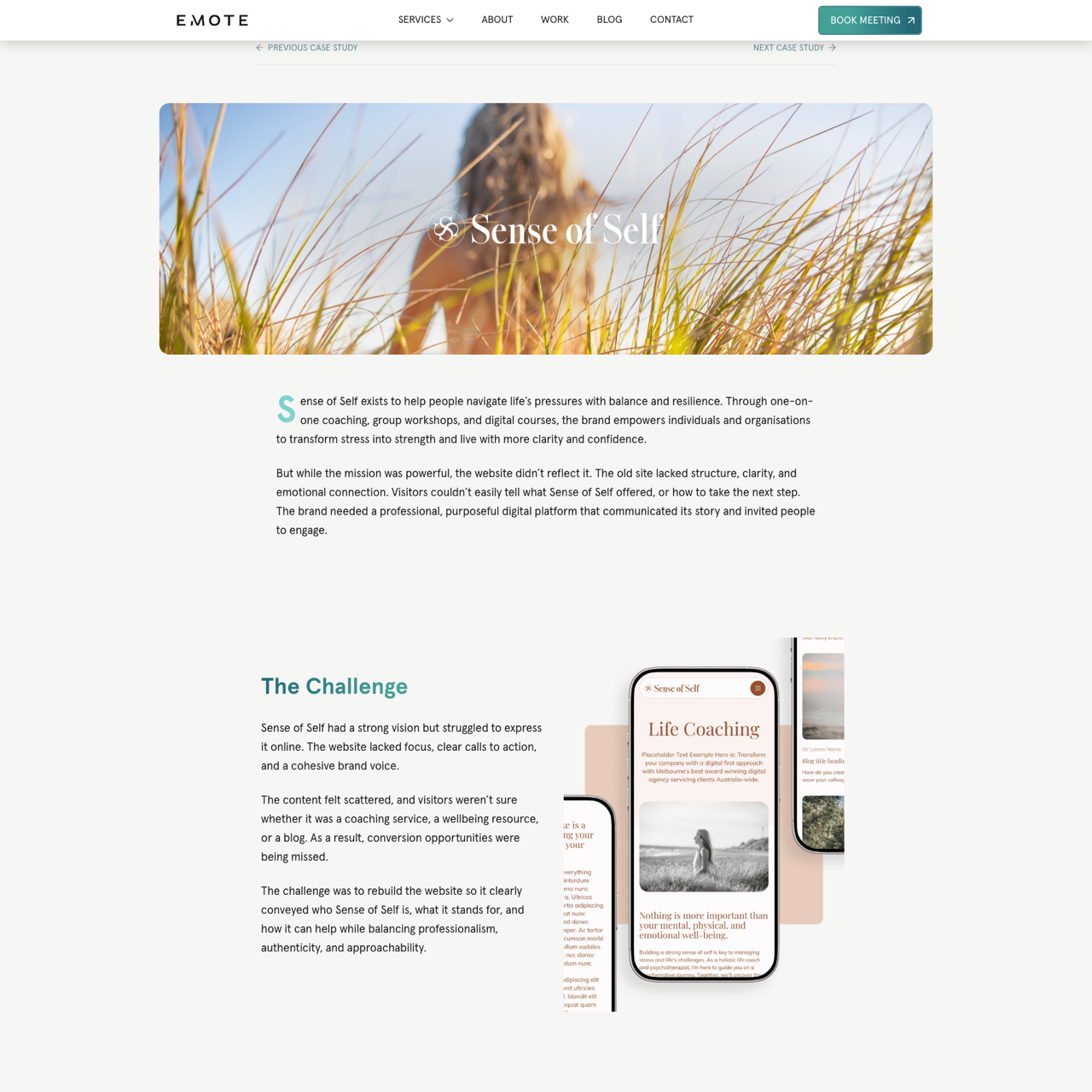 The case study details Emote Digital's redesign of Sense of Self's iOS website to reflect the brand's mission of empowering individuals through coaching and wellbeing. The new platform features a cohesive, purposeful design that conveys calm, confidence, and warmth while maintaining professionalism. By aligning the website with the brand's identity, the project successfully improved user engagement and conversion rates. The site now clearly communicates what Sense of Self offers, from one-on-one coaching to digital courses, and includes relatable content that guides visitors from curiosity to action. The result is a more intuitive and compelling online presence that strengthens the brand's connection with its audience.