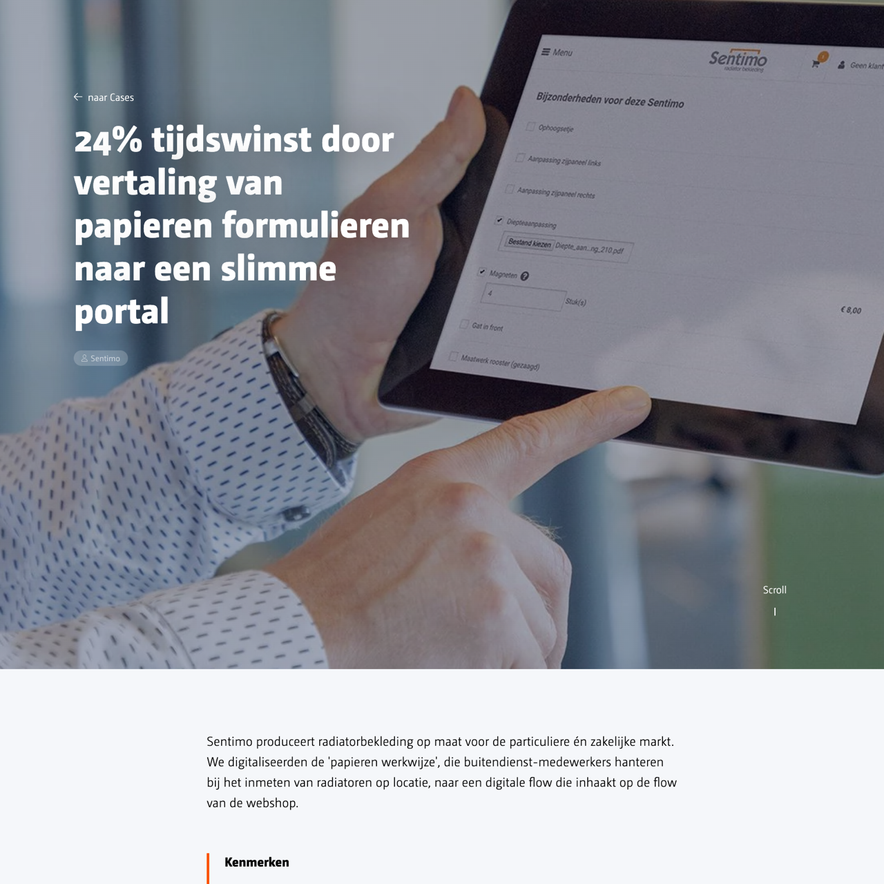 Sentimo faced challenges with manual processes for its in-meetservice, leading to delays and inefficiencies. The company aimed to streamline the customer experience by integrating the service into its webshop flow, enabling automated handling similar to regular orders. By digitizing the measurement form and matching it with corresponding images, Sentimo improved accuracy and efficiency. The solution allowed for seamless integration, reducing manual steps and enhancing customer satisfaction. The implementation marked a significant step toward a fully automated customer service process, aligning with Sentimo's goal of delivering a smooth and efficient experience for its users.