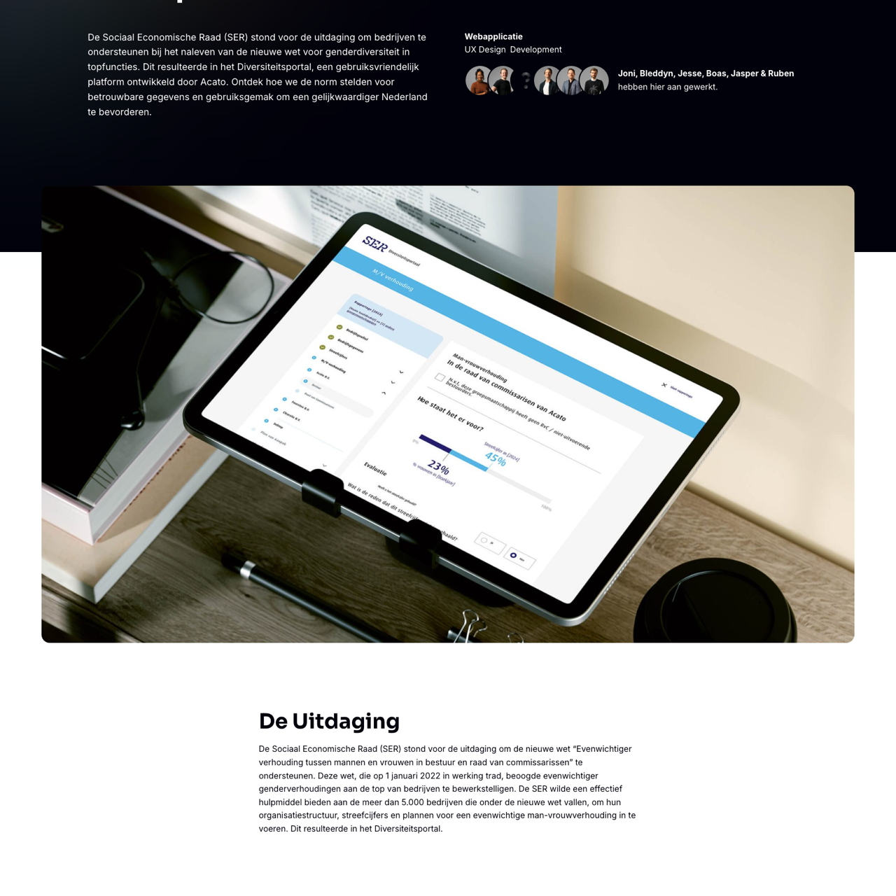The Sociaal Economische Raad (SER) faced the challenge of supporting businesses in complying with the new gender diversity law at top and subtop positions. Acato developed the Diversiteitsportal to ensure reliable data and user-friendly access, enabling businesses to input their organizational structures, performance metrics, and action plans. The platform's focus on simplicity and usability made it a valuable tool for achieving gender balance in leadership. The portal's success highlights Acato's ability to create solutions that drive transparency and equality in corporate governance.