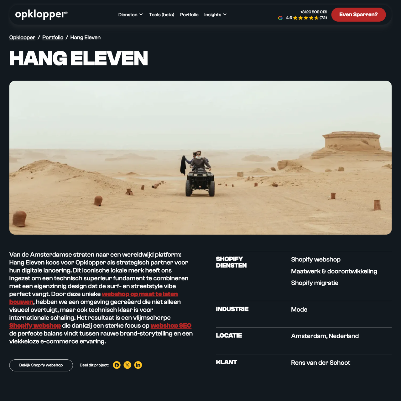 Hang Eleven, a creative Amsterdam-based brand, partnered with Opklopper to build a bespoke Shopify platform within a tight deadline and budget. The project required combining technical expertise with a unique design to create a visually compelling and functional e-commerce solution. Opklopper’s team delivered a platform that not only met the client’s aesthetic and functional needs but also ensured scalability for international expansion. The result was a streamlined, user-friendly storefront that aligned with Hang Eleven’s surf-inspired, relaxed style. The collaboration highlighted Opklopper’s ability to deliver high-quality, custom-built solutions under pressure.