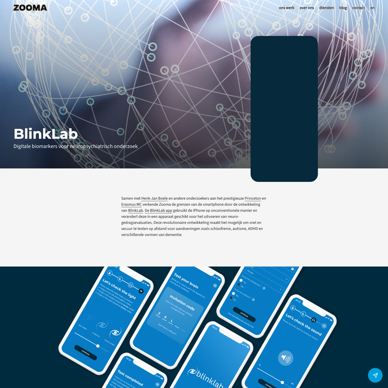 BlinkLab transformed the iPhone into a neurobehavioral tool for studying conditions like schizophrenia, autism, and dementia by using facial landmark detection to measure reaction speed and accuracy. Collaborating with Henk-Jan Boele at Princeton and Erasmus MC, Zooma developed the app to replicate classical conditioning experiments, demonstrating comparable results to traditional methods. The app's ability to capture millisecond-level responses makes it a powerful platform for remote, efficient research. By linking visual stimuli to auditory cues, BlinkLab provides a scalable solution for studying neurological conditions, offering real-world insights into brain function and treatment efficacy.