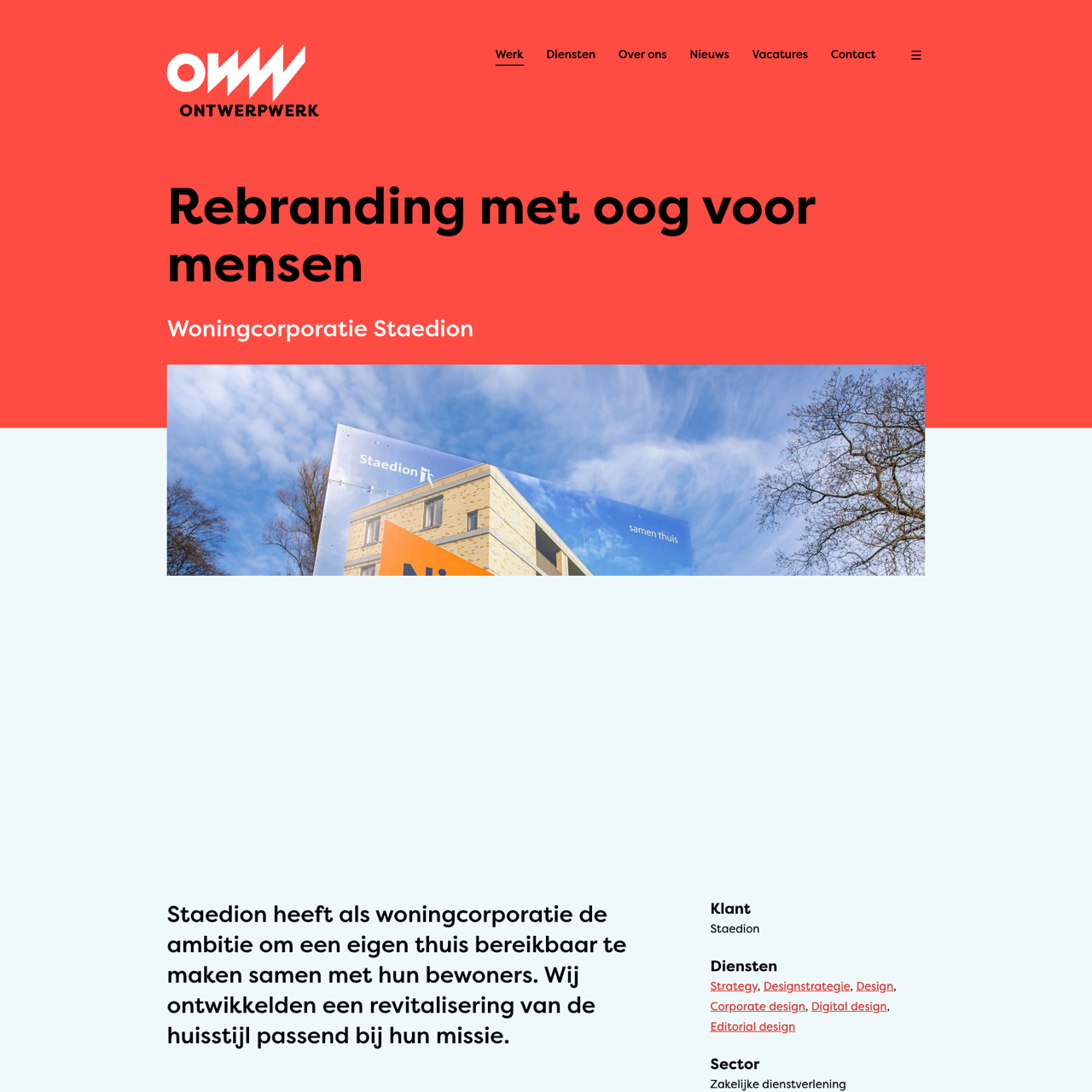 Staedion rebranded their housing brand with 'Samen Thuis' to align with their mission of 'Doe het steeds beter' and 'Maak af waaraan je begint'. The design audit identified key elements like the logo and oranje color that remained unchanged, while introducing a fresh visual identity through a modern palette and typography. The rebranding focused on creating a more recognizable and cohesive brand experience, emphasizing practical solutions and community engagement. The new style enhances the brand's ability to communicate effectively with their target audience, reinforcing their commitment to improving living spaces. The result is a more dynamic and approachable visual identity that reflects the brand's core values and strategic goals.