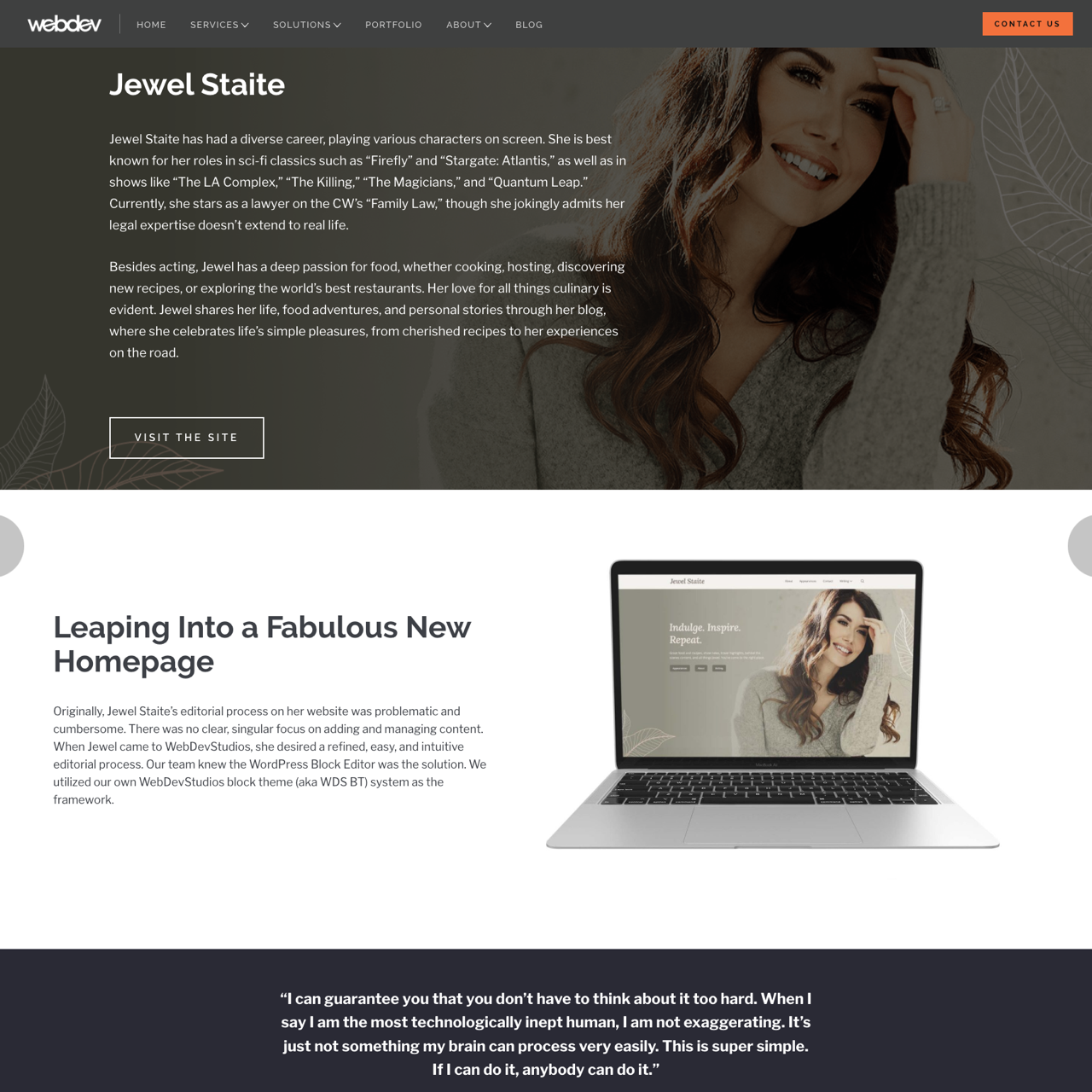 Jewel Staite’s website required a modern, intuitive editorial process to manage her diverse content. WebDevStudios’ WDS-BT theme provided a streamlined solution, simplifying content creation and management. Jewel, who admitted her technical skills were limited, found the theme’s user-friendly interface effortless to navigate. The theme’s clean design and WordPress block features allowed her to personalize her site without complex technical hurdles. This transformation enabled her to focus on her passion for food and storytelling, showcasing the theme’s flexibility and ease of use.