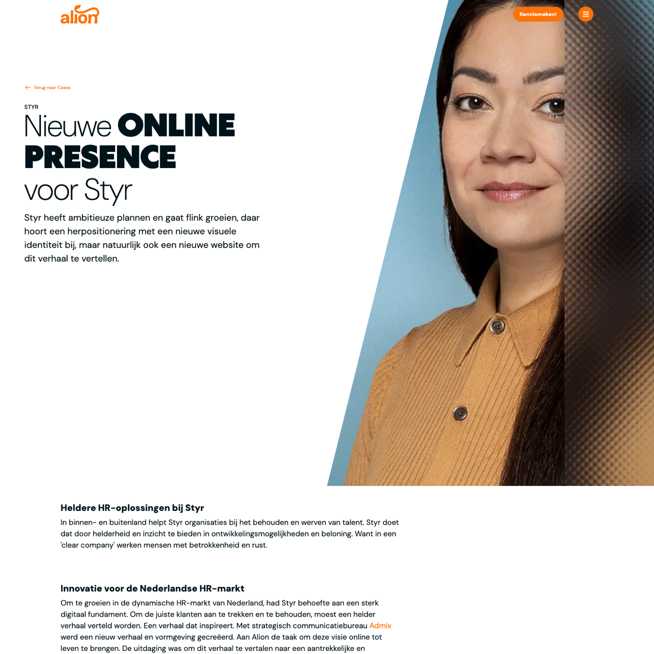 Styr needed a modern online presence to communicate their clear HR solutions effectively. Admix collaborated with Alion to create a professional, user-friendly website using the Evolve CMS built on Umbraco. The site features multilingual support and a clean design, enhancing brand visibility and engagement. Styr's new platform now offers a seamless experience for both employees and clients, driving increased trust and conversion. The project successfully positioned Styr as a reliable HR partner in the Netherlands, with the website serving as a strong foundation for future growth.
