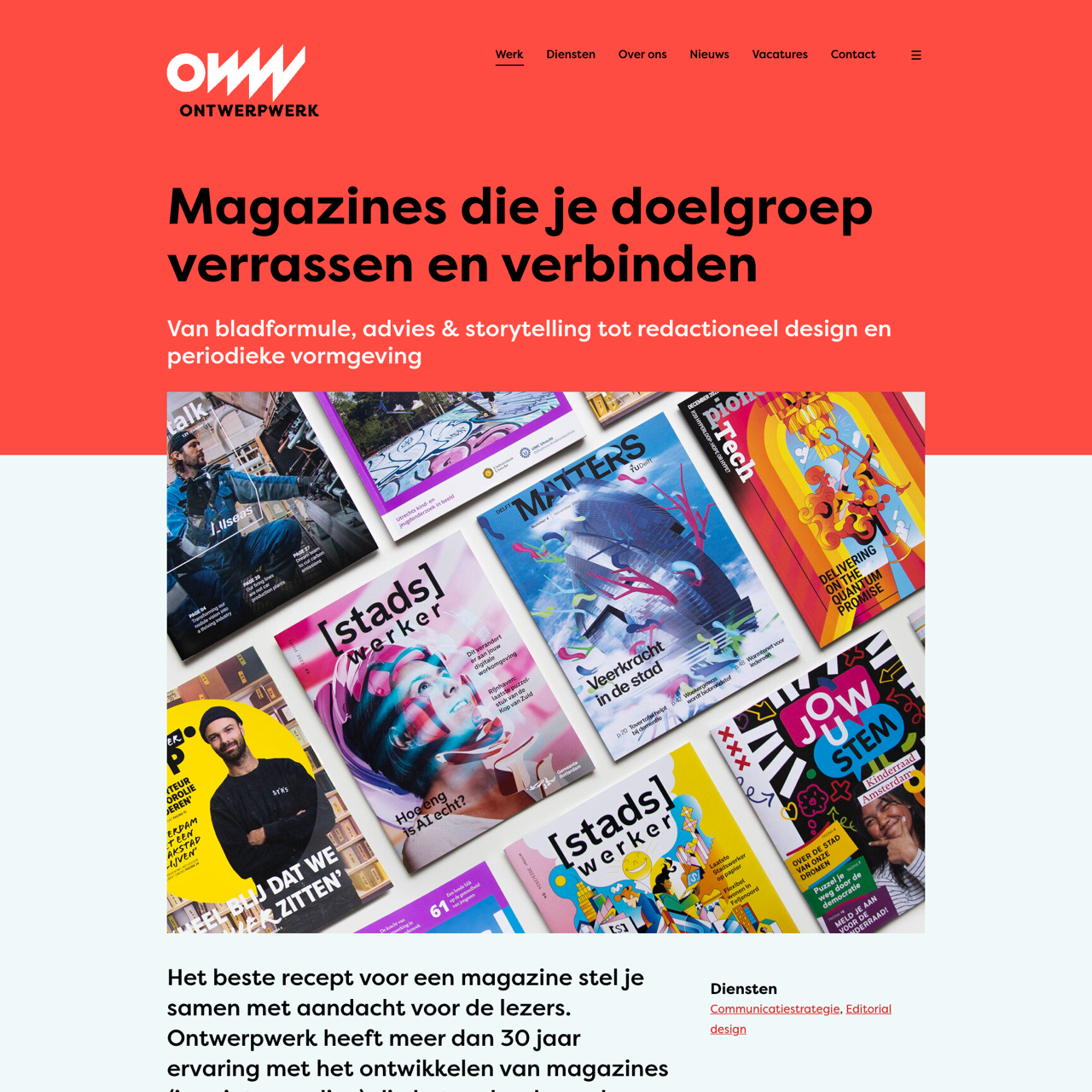 Ontwerpwerk crafted a magazine that surprised and connected its audience through innovative design and storytelling. The case involved developing a layout that balanced content structure with visual appeal, ensuring readability and engagement. The result was a magazine that not only captured the essence of the organization but also fostered a deeper connection with the target audience. Key elements included a dynamic visual rhythm, a cohesive narrative, and a blend of professional design with accessible formatting. The outcome was a magazine that stood out for its ability to both inform and inspire, leaving a lasting impression on the readers. The project highlighted the importance of aligning editorial content with visual storytelling to create a compelling and memorable experience.