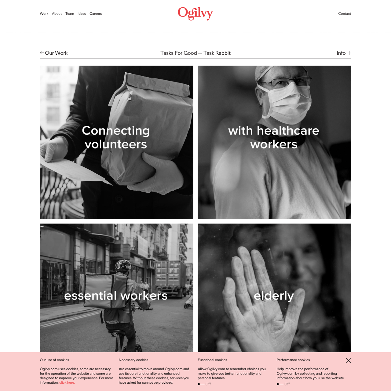Ogilvy partnered with Task Rabbit to transform its 'for hire' platform into a 'for good' initiative during the COVID-19 crisis, connecting volunteers with those in need. The program expanded services like contactless grocery shopping and virtual home help, supporting elderly, healthcare workers, and essential workers. By rebranding, Task Rabbit aimed to alleviate burdens and foster community support. The initiative successfully connected over 1 million volunteers to 500,000 individuals, highlighting the power of collective action. The case demonstrates how redefining a platform can drive meaningful impact and resilience during challenging times.