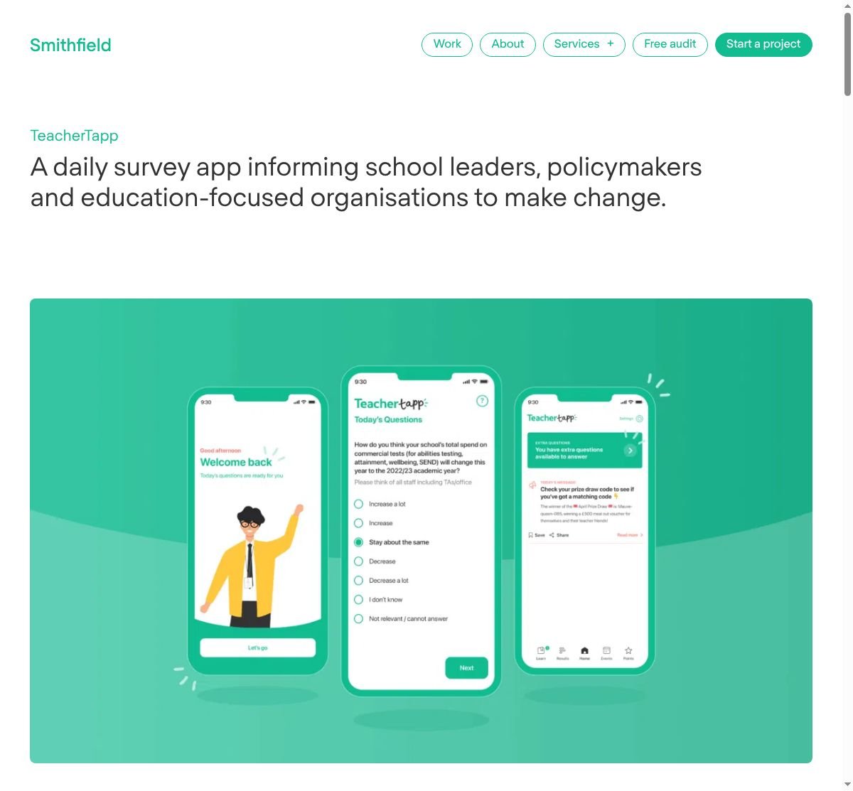 TeacherTapp, in collaboration with Smithfield Studio, has successfully transformed the way teachers interact with educational policies. The daily survey app, designed meticulously by Smithfield Studio, provides a platform for teachers across England to voice their experiences and influence education-focused organizations and policymakers.