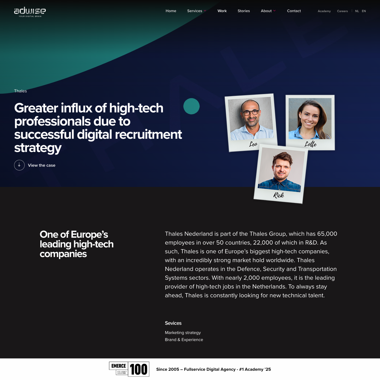 Thales optimized candidate journeys for high-value talent by creating detailed personas like Leo, a senior software engineer, and Risk, a university student. The strategy mapped out touchpoints from initial awareness to job applications, leveraging social media, job boards, and targeted campaigns. By aligning messaging with audience stages, Thales improved engagement and conversion rates. The approach ensured personalized outreach, enhancing the candidate experience and driving qualified applications.