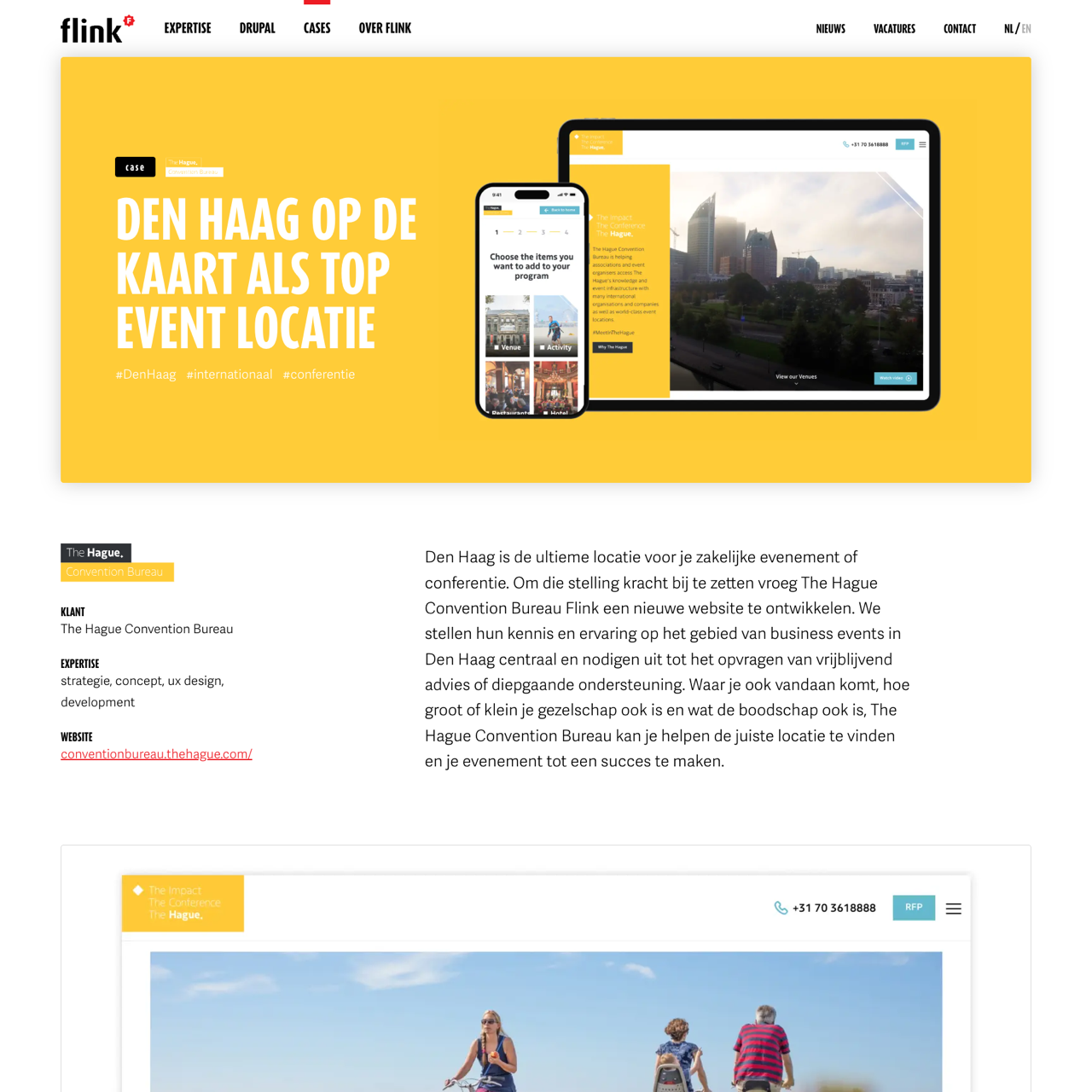 The Hague Convention Bureau, a leading provider of business event solutions, sought to enhance its visibility and credibility by launching a new website. Flink designed a multisite platform that highlights the bureau's expertise in international business events, offering tailored advice and support for clients worldwide. The site features a professional design that reflects the city's reputation as a top destination for business conferences, with detailed information on venue locations, event logistics, and the unique blend of historical charm, cultural diversity, and convenient accessibility. The platform's user-friendly interface enables visitors to easily find the perfect location for their event, while the inclusion of contact details for specialized experts ensures personalized service. The website's success has positioned Den Haag as a premier destination for business events, driving sustainable growth and reinforcing the bureau's commitment to excellence in event planning.