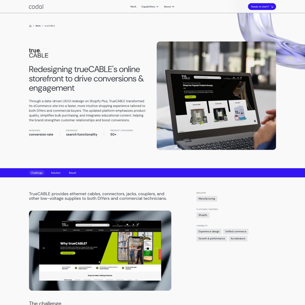 TrueCABLE's Shopify Plus Redesign Boosts Conversions & Engagement