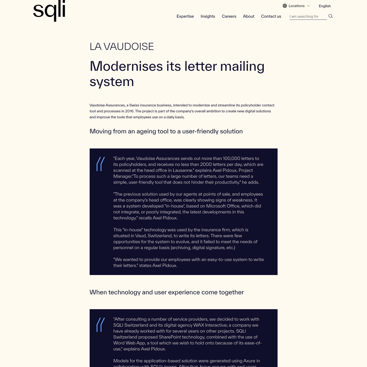 Vaudoise Assurances, a Swiss insurance firm, modernized its letter mailing system to enhance efficiency and user experience. The outdated in-house solution, based on Microsoft Office, struggled with integration and scalability, leading to operational inefficiencies. By partnering with SQLI Switzerland, they implemented SharePoint technology and Word Web App, creating a streamlined platform for generating and managing letters. The new system improved productivity, reduced manual errors, and enabled seamless integration with digital signature tools. The solution demonstrated how technology can bridge legacy systems and modern workflows, ensuring a seamless experience for employees across the organization.