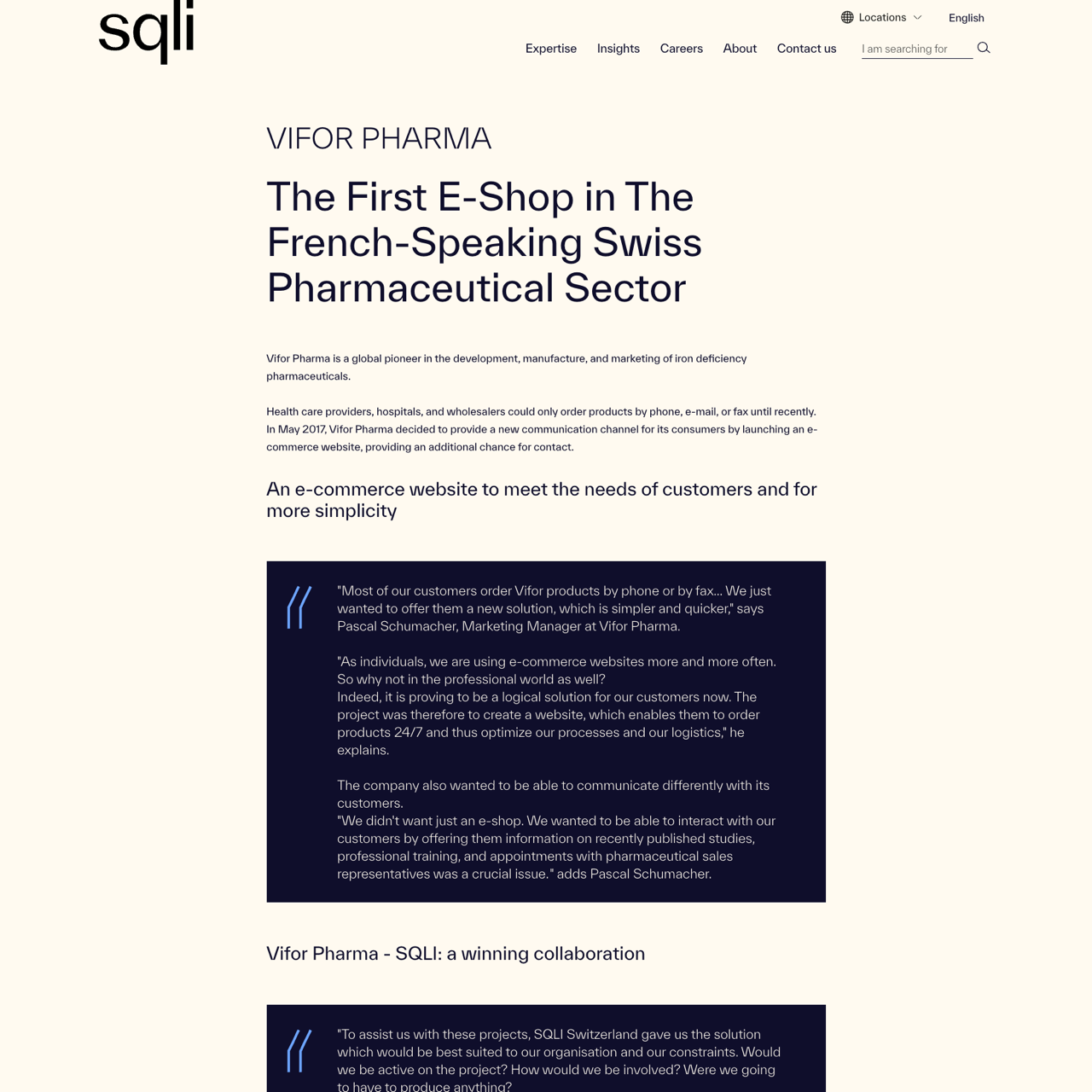 Vifor Pharma transformed its operations by launching the first e-commerce platform in the French-speaking Swiss pharmaceutical sector, enabling 24/7 product ordering and enhanced customer interaction. SQLI provided a tailored solution, creating a responsive, modern website that streamlined logistics and improved accessibility. The project successfully bridged traditional communication channels with digital innovation, offering customers a seamless and efficient ordering experience. The initiative not only expanded Vifor's market reach but also strengthened its ability to engage with healthcare professionals and patients through targeted content and real-time communication.