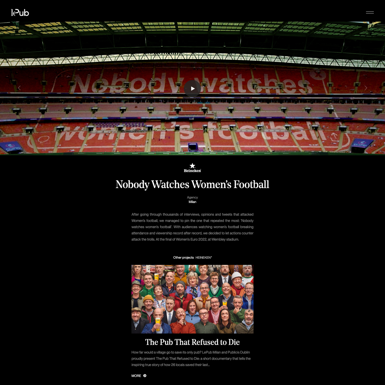 In a bold move to counteract the pervasive stereotype that women’s football is ignored, LePub Milan and Publicis Dublin produced the documentary 'The Pub That Refused to Die,' showcasing how a village community rallied to save its last remaining pub. The film, released on the platform, became a powerful counter-narrative to the claim that women’s football is unwatched, highlighting the resilience of local communities. By focusing on the human story behind the pub’s survival, the campaign challenged the misconception and inspired broader conversations about women’s football. The documentary’s success underscored the importance of storytelling in amplifying underrepresented voices and the power of collective action to reshape public perception.