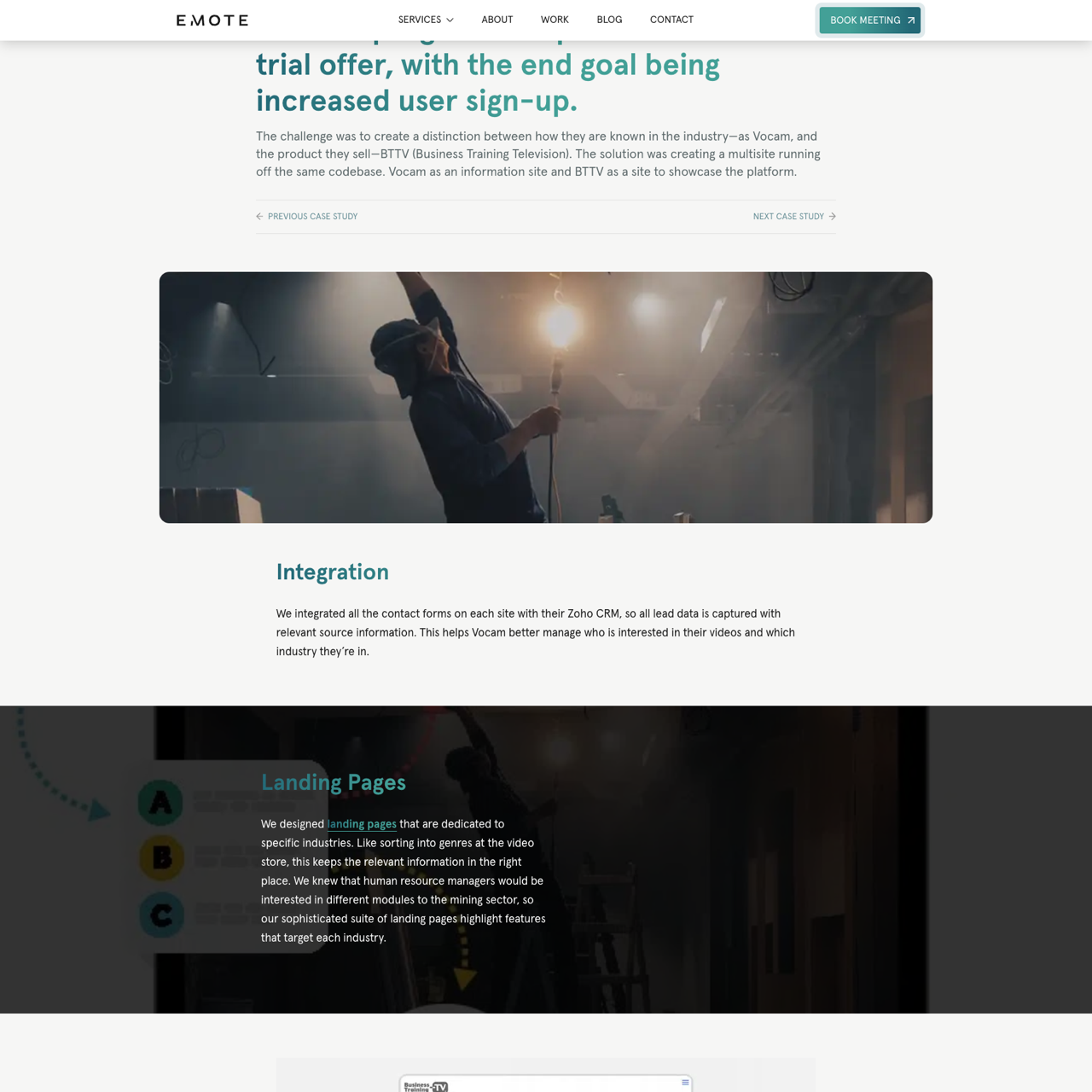 Vocam transformed their workplace training videos from VHS to online, needing a website to promote their free trial and boost sign-ups. Emote Digital designed a multisite platform with integrated Zoho CRM, capturing lead data from multiple sources. The solution focused on industry-specific landing pages, ensuring relevant content for different sectors. This strategic approach enhanced user engagement and drove higher conversion rates. The result was a more effective digital presence, aligning Vocam's brand with modern technology and industry needs.