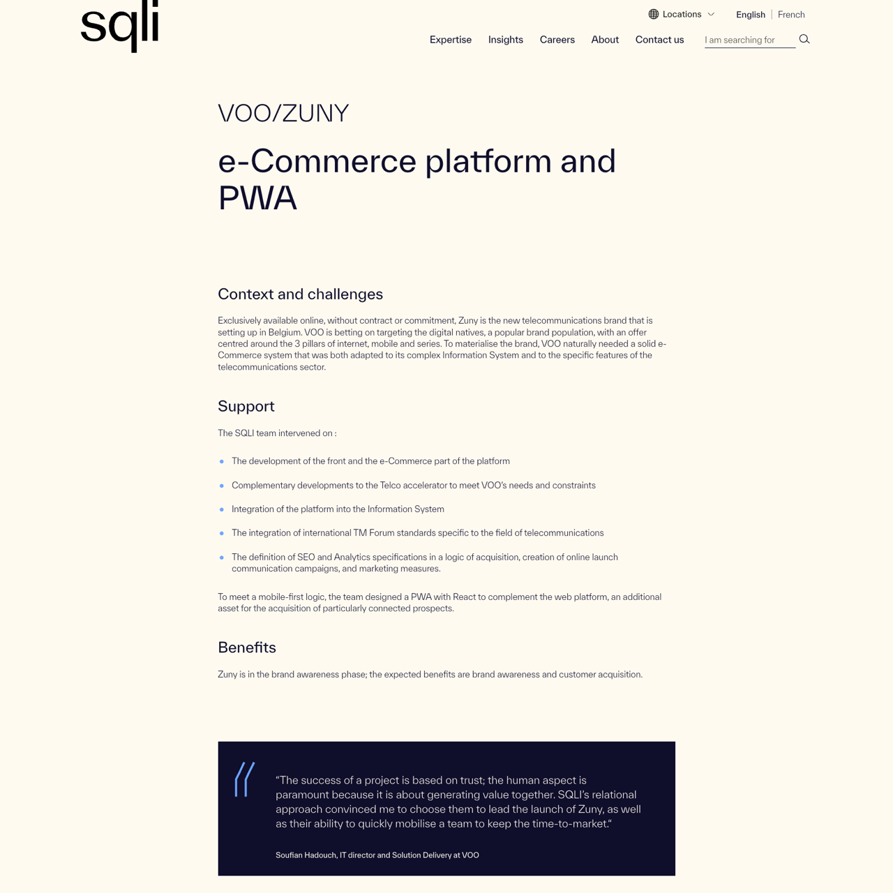 VOO partnered with SQLI to develop a robust e-commerce platform tailored for its telecom brand, addressing complex information systems and telecom-specific requirements. The solution included a PWA with React for mobile-first users, ensuring seamless cross-platform experience. By integrating international TM Forum standards and optimizing for SEO/Analytics, the platform achieved measurable brand awareness and customer acquisition. The project successfully aligned VOO's digital strategy with its target audience, leveraging innovative technology to drive growth.