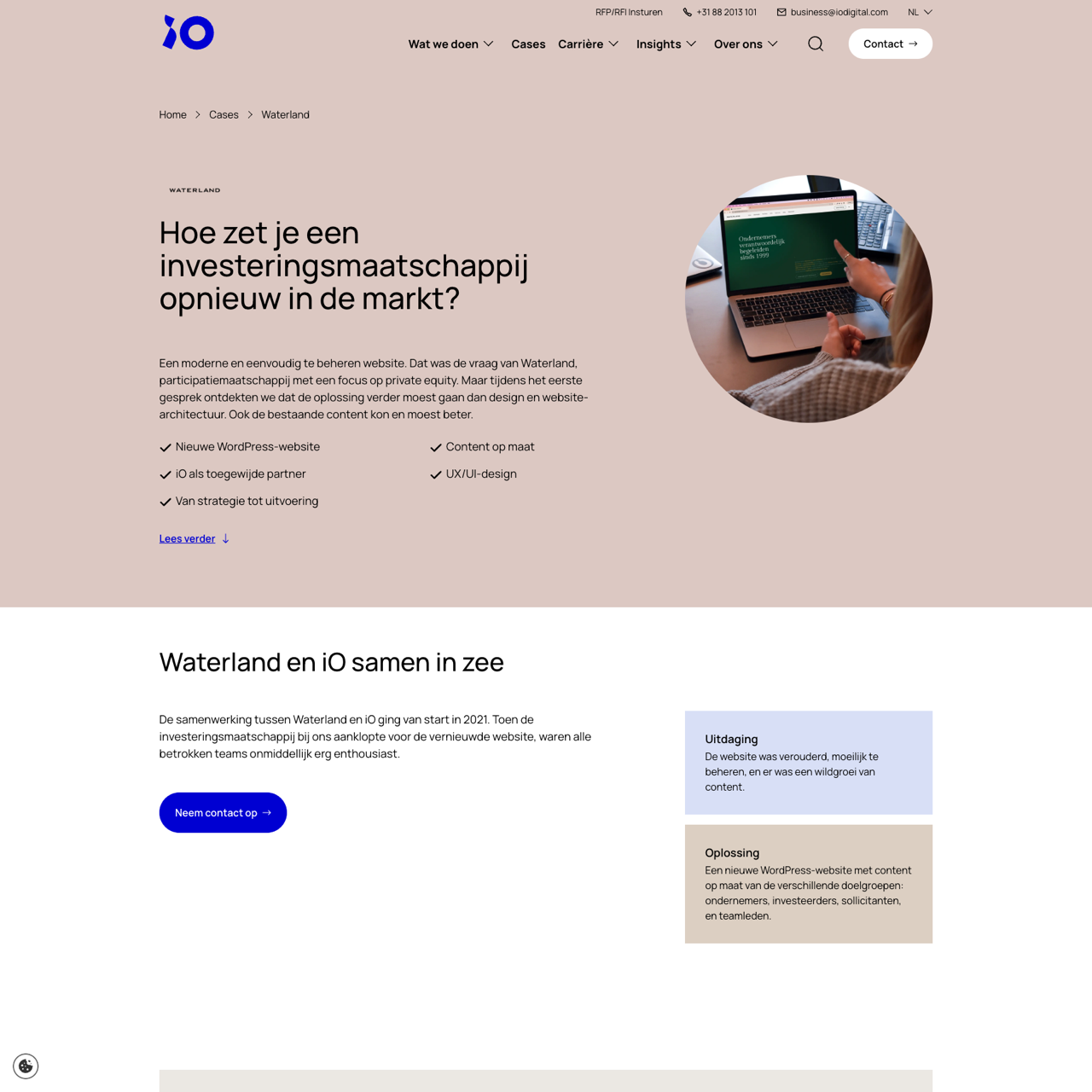 Waterland, a private equity firm, faced challenges with an outdated website that struggled to engage their target audience. iO Digital redesigned their platform, creating a modern WordPress site that tailored content to different segments: entrepreneurs, investors, job seekers, and team members. The new site emphasized Waterland's value proposition, expertise, and local presence, positioning them as both an investment partner and a hiring platform. By integrating strategic design and content, the site boosted engagement and visibility. The transformation not only improved user experience but also strengthened Waterland's market position, demonstrating how a well-executed digital strategy can drive growth and relevance.