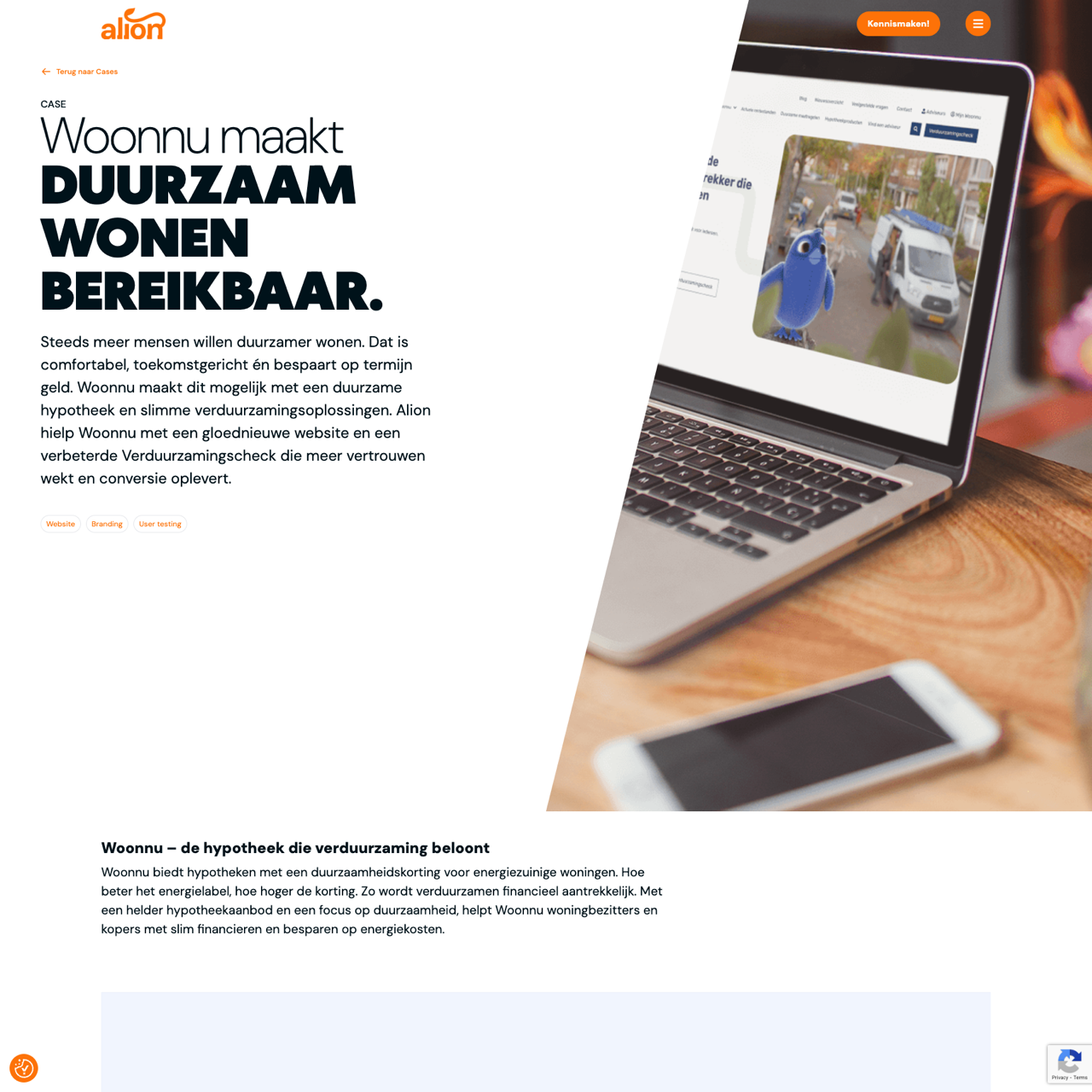 Woonnu's website struggled with low conversion, despite a Verduurzamingscheck that lacked engagement. Alion conducted research to uncover pain points, resulting in a redesigned site with intuitive UX and a converterende check that drives action. The new platform inspires users and guides them through the process, increasing trust and conversion rates. The optimized experience now sees higher engagement and usage of the Verduurzamingscheck, demonstrating Alion's ability to transform user journeys and drive sustainable outcomes.