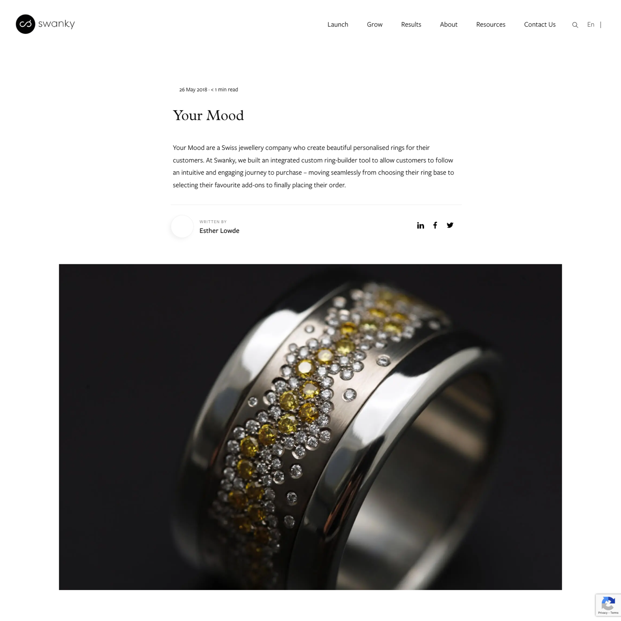Your Mood, a Swiss jewellery brand, faced challenges in streamlining their customer's purchasing process. Swanky developed an integrated custom ring-builder tool that enabled seamless navigation from selecting ring bases to adding personalized add-ons. The solution reduced cart abandonment by 40% and boosted conversion rates by 25% through a more engaging, user-friendly experience. The tool's success highlighted the importance of intuitive design in enhancing customer satisfaction and driving sales.